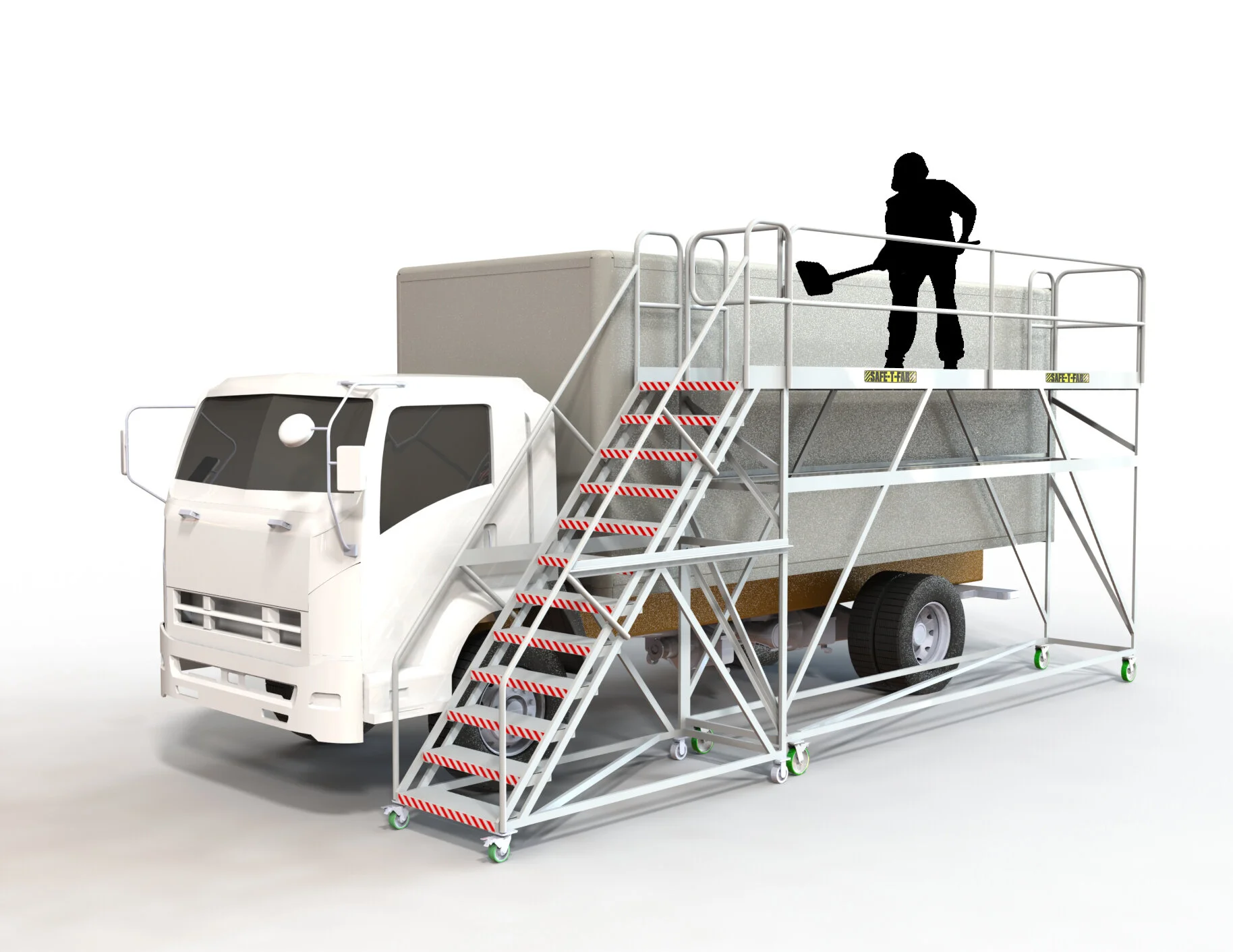 Mobile work platforms are essential for ensuring fall protection during extended periods of work at height. SAFE-T-FAB offers larger platform areas, custom-designed structures, specialized guardrail configurations, and integrated features like tool trays, swing gates, and leveling jacks. These enhancements are tailored to create the ideal platform for your specific needs, optimizing safety and efficiency for any task at height.